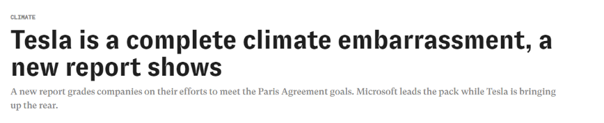 The truth behind this myth? Tesla ranks dead last in a list of tech companies making progress to meet the Paris Agreement climate goals. It earned an F grade in the “Road to Zero Emissions” report, falling below even Chevron and Exxon. Tesla is also under investigation by the SEC right now for failing to disclose the risk of fire with its solar panels.