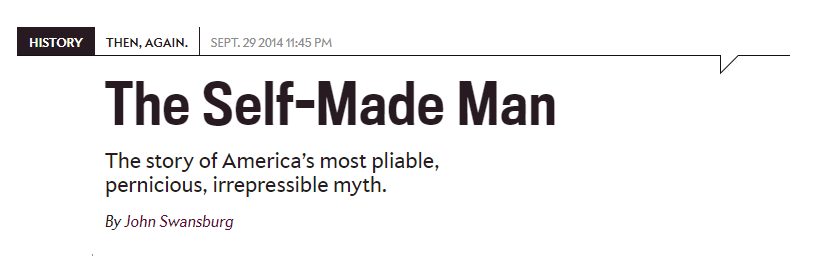 America loves a brilliant white man. Going back to the 1700s and the founding of the nation, we bought into the “self-made man” ideology. From Benjamin Franklin, Andrew Carnegie, and John D. Rockefeller to modern examples such as Howard Schultz, Steve Jobs, and Oprah... all have been idolized and imitated. Even today, Forbes maintains a “Self-Made Score,” rating the richest people in America according to how much of their success was earned rather than inherited.